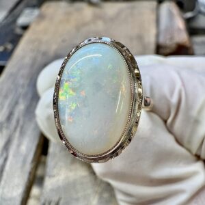 お預かりした指輪も、最初に見られたオパールのつやが細かな傷によって少しくもって見える状態でした。
