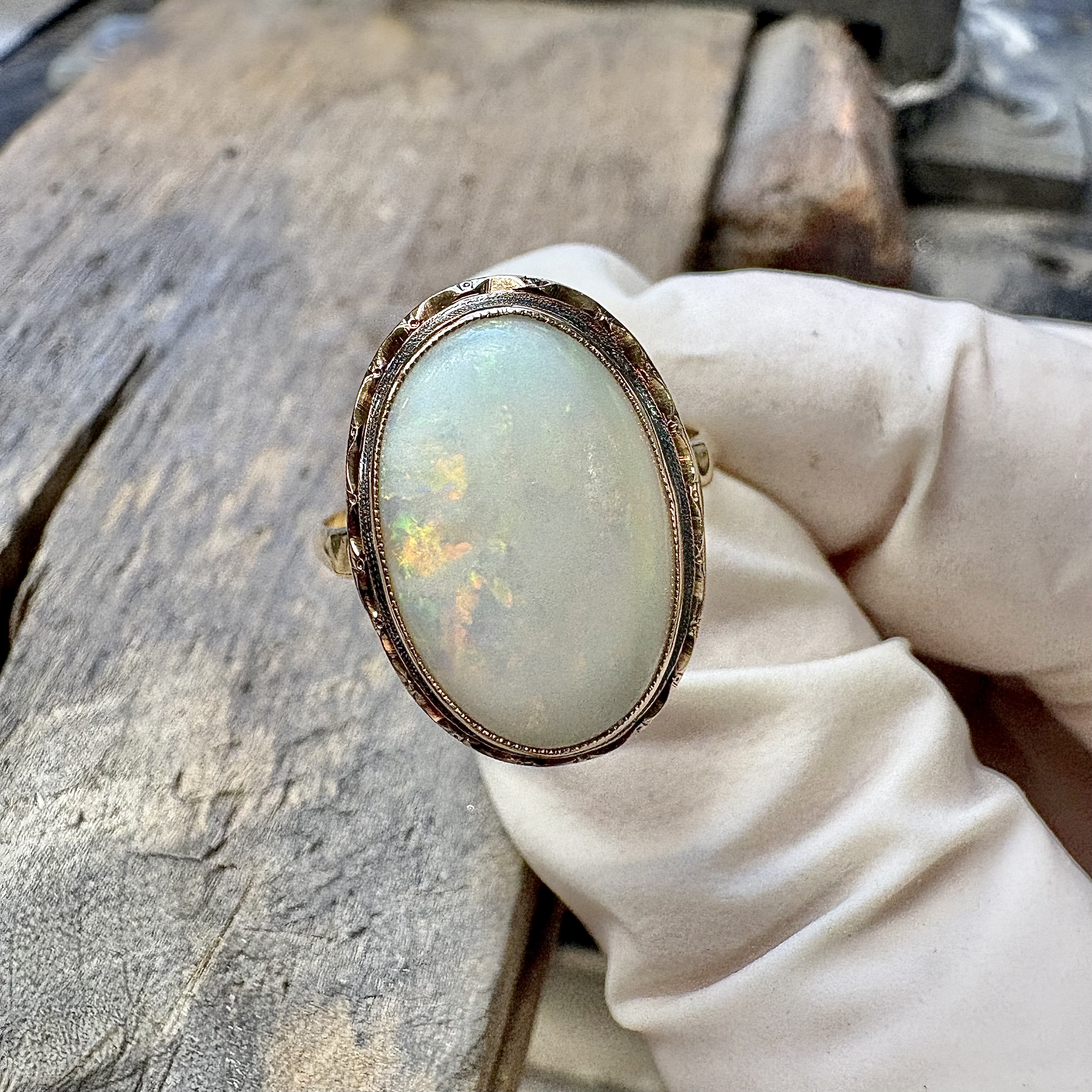 オパールのついた金の指輪をお預かりしました。今回は、こちらの指輪の磨き直しを行っていきます。